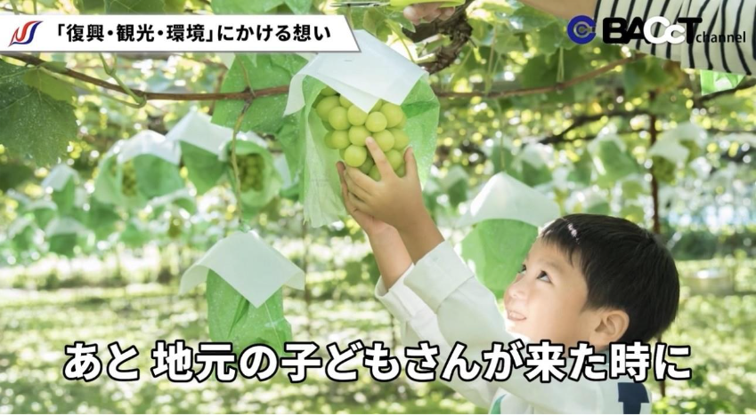 この工場は単なる生産拠点ではありません。復興の象徴であり、観光の起点であり、環境と共生する地域資源でもあります。たとえば、夏休みには子ども食堂への参画や、敷地内のビニールハウスで育てたシャインマスカットを、地元の子どもたちが“ちぎって食べる”体験を提供。ファミリーやグループが楽しめるレクリエーションの場としても機能しています。