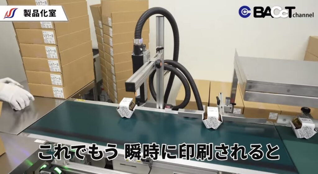 コンベア上に商品を流しながら、瞬時に賞味期限を印字する仕組みを採用。スピードと正確性を両立し、ロット管理にも貢献しています。